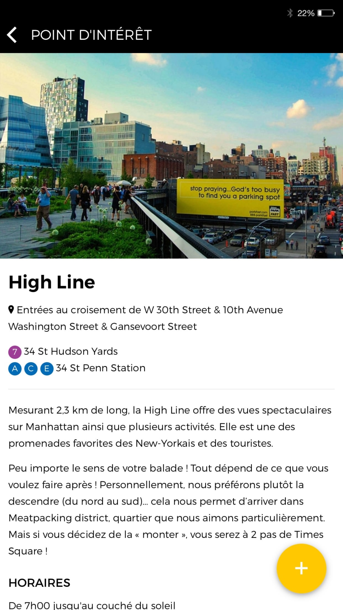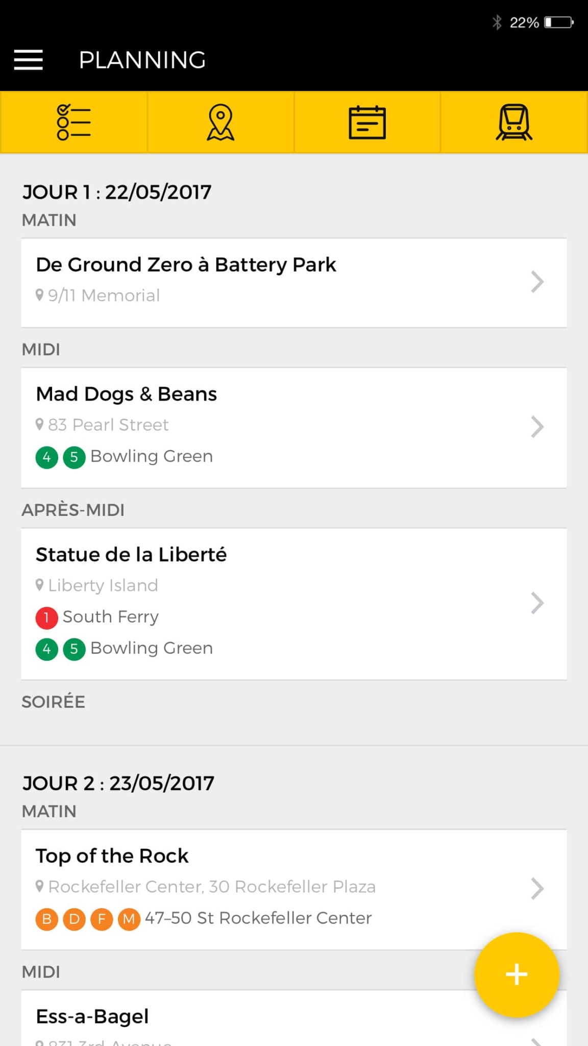 Nous l’avons conçue dans le but de faciliter l’organisation de votre voyage à New York, depuis les préparatifs jusqu’aux visites sur place. Notre application mobile est disponible hors ligne (c’est-à-dire que vous n’avez pas besoin de réseau téléphonique ou wifi pour la faire fonctionner), sur iPhone, iPad et Android.