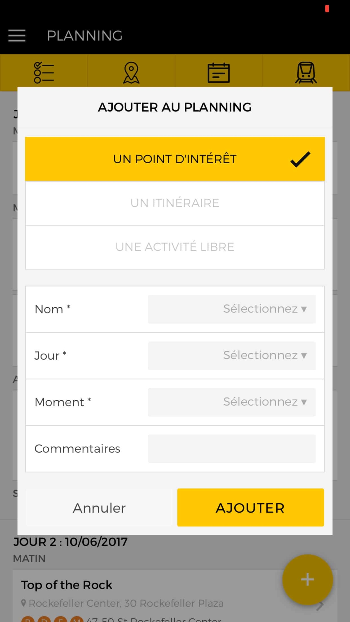 Pour une expérience optimale, filtrez les points d’intérêt et affichez uniquement ceux présents dans votre planning.