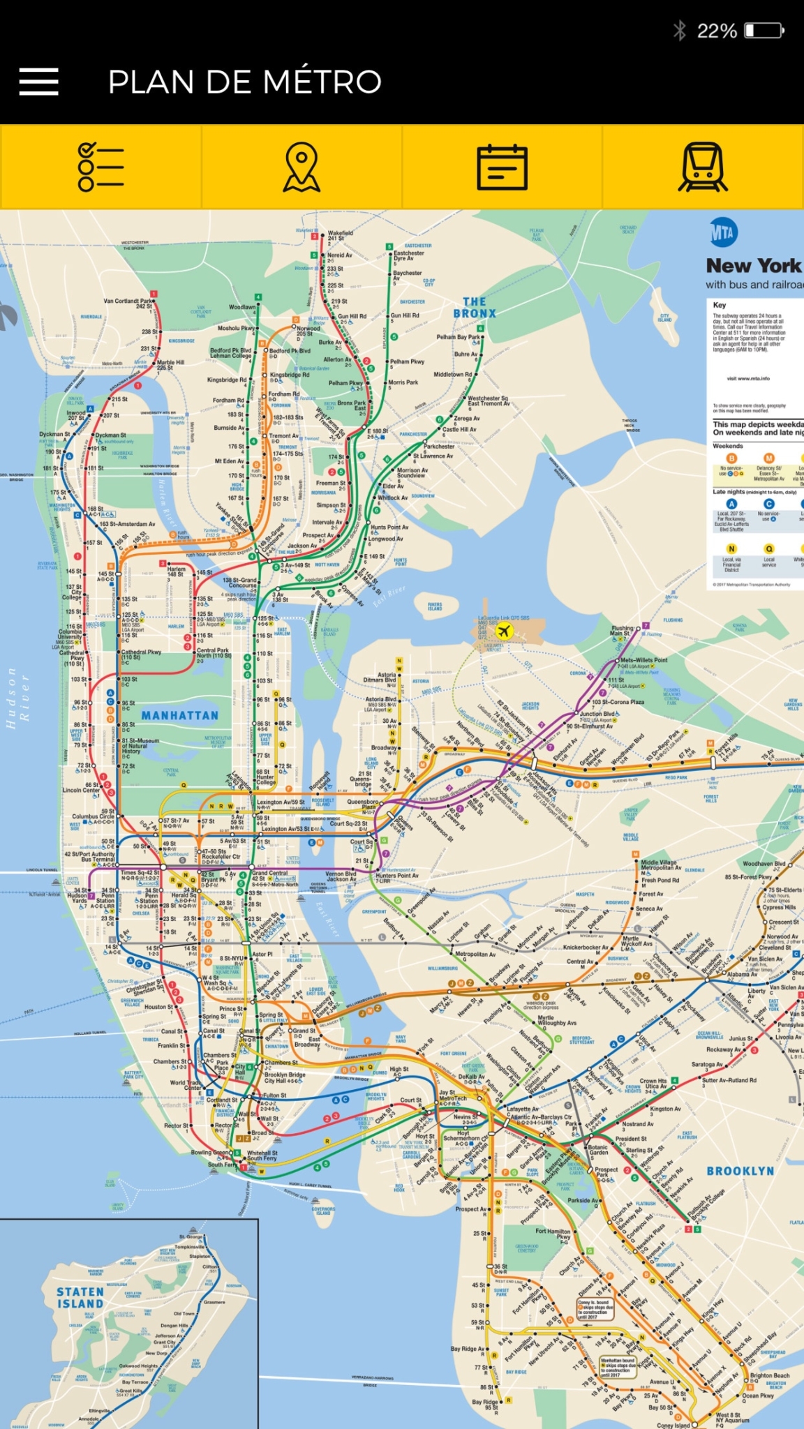 Ayez toujours avec vous le plan du métro de New York, il vous servira de nombreuses fois dans la journée ! Disponible hors ligne.