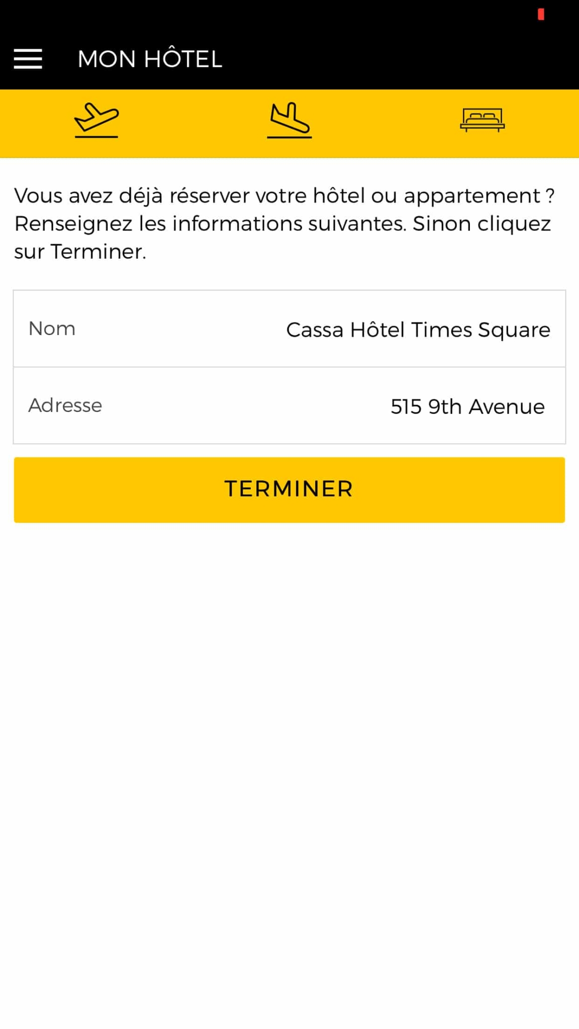 Renseignez et retrouvez la durée de votre voyage, vos dates de séjour, vos horaires de vol, votre compagnie aérienne et les coordonnées de votre hôtel dans un seul et même endroit.