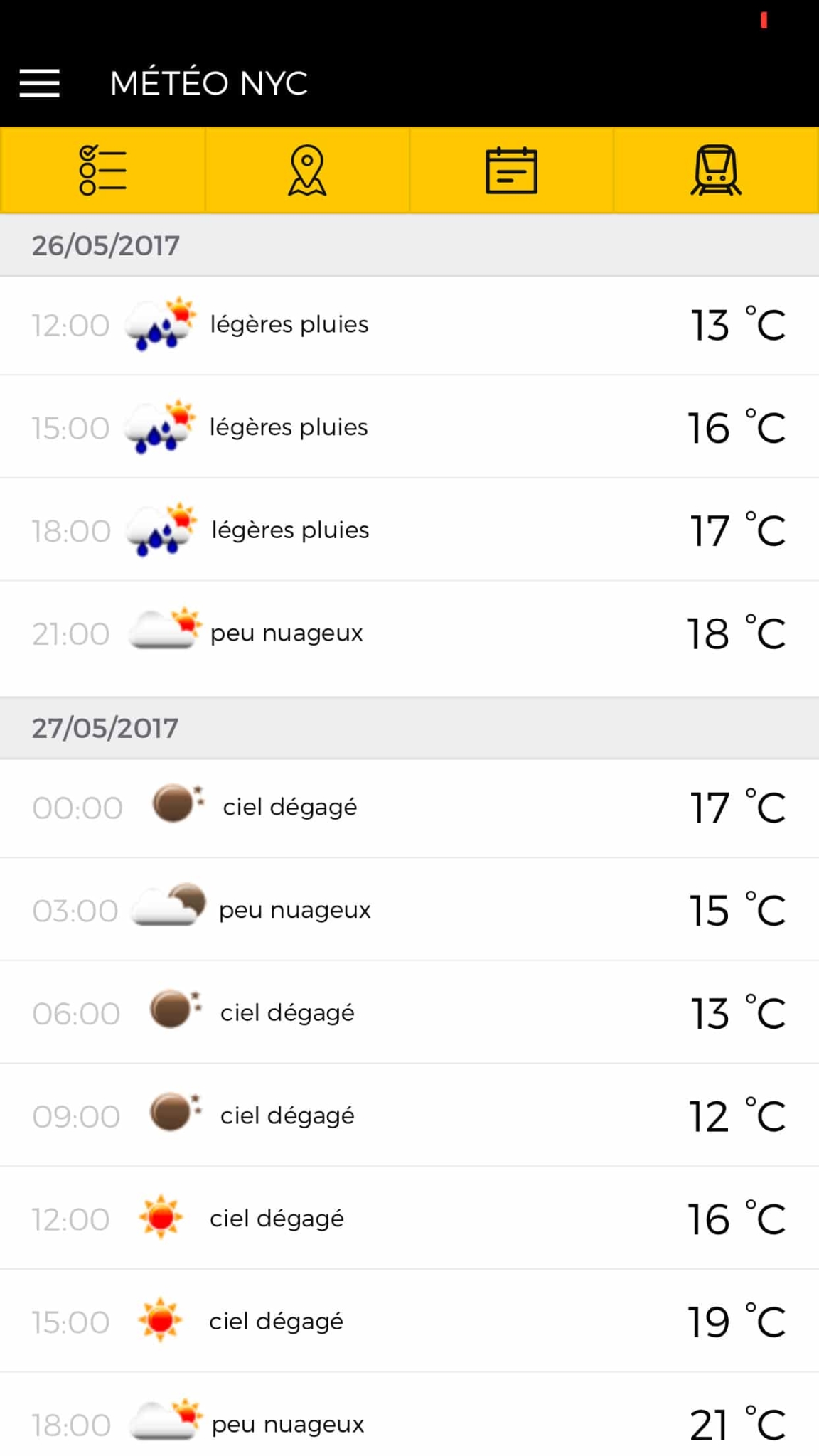 Retrouvez les prévisions météo des 3 jours à venir. Attention, il s’agit de la seule fonctionnalité qui nécessite une connexion Internet.
