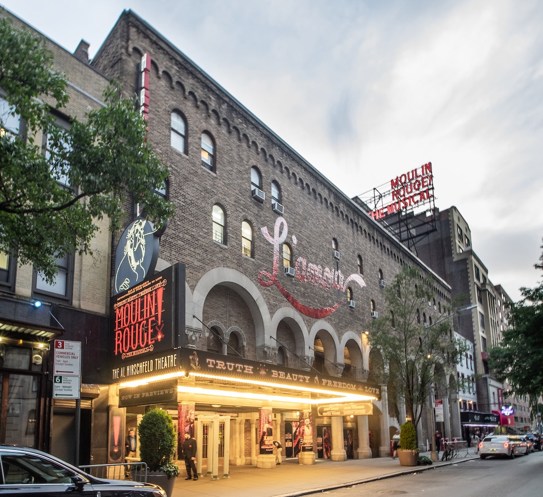 La comédie musicale Moulin Rouge dure environ 2h35 et se joue au Al Hirschfeld Theatre, 302 W 45th St.