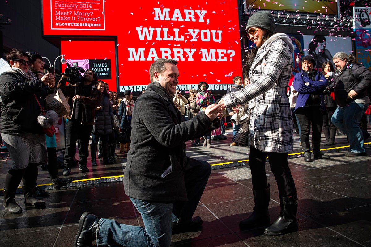 Faire une demande en mariage à Times Square