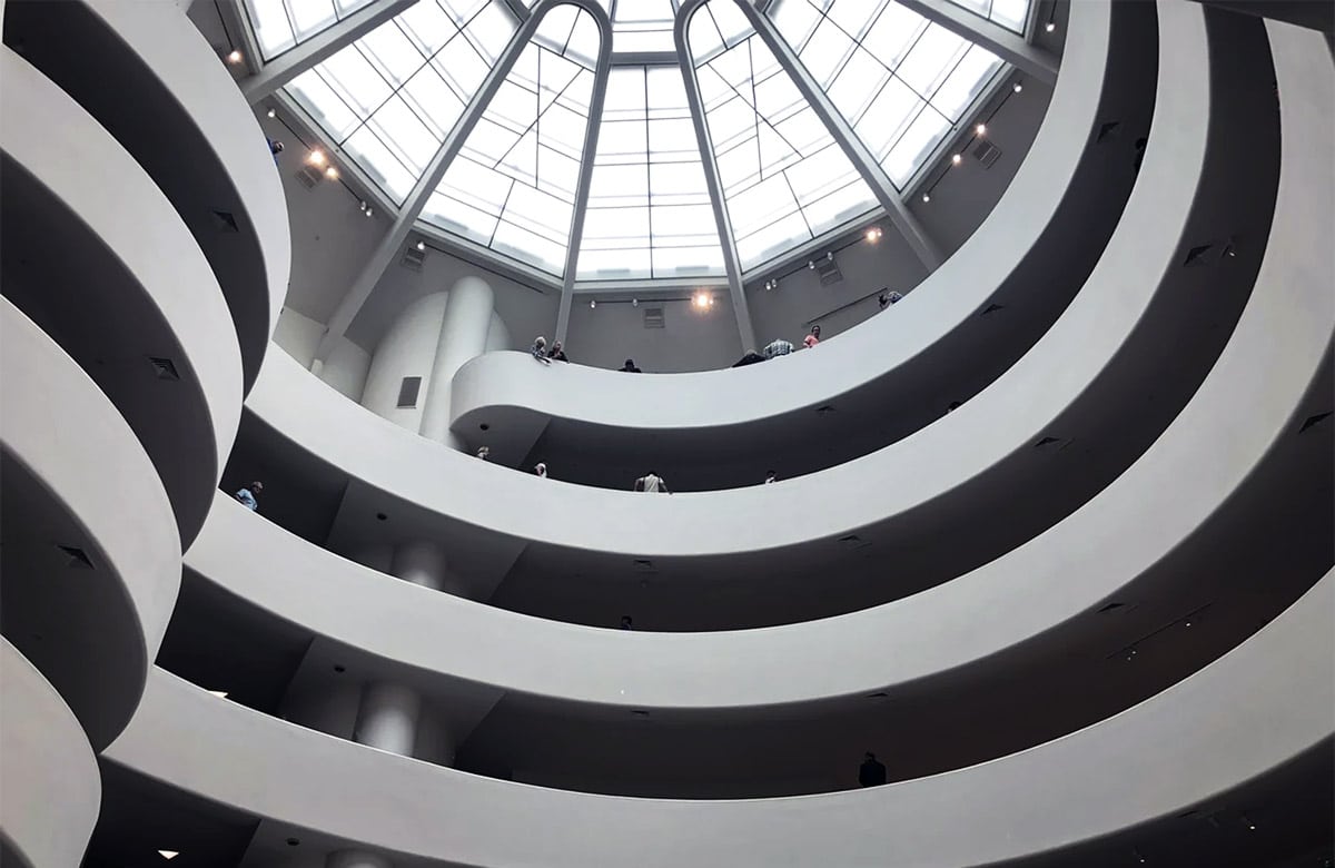 L’architecte à l’origine de ce musée est Franck Lloyd Wright. Il a d’ailleurs été critiqué lors de la construction du musée car les gens disaient que la beauté du monument concurrençait les oeuvres d’art à l’intérieur. C’est sûr que ce bâtiment est vraiment unique et peut être considéré comme une œuvre d’art à elle toute seule !