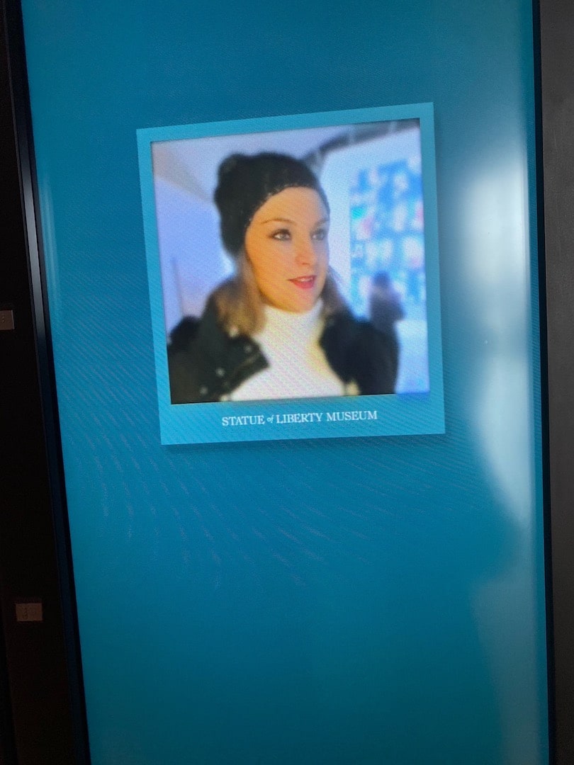 C’est un musée qui se visite assez rapidement mais qui a quand même quelques éléments interactifs à tester. Par exemple, dans cette dernière partie du musée, il y a notamment des bornes photos. C’est ce qu’ils appellent « Becoming Liberty ». Vous vous prenez en photo pour ensuite participer à un collage numérique en forme de Statue de la Liberté.