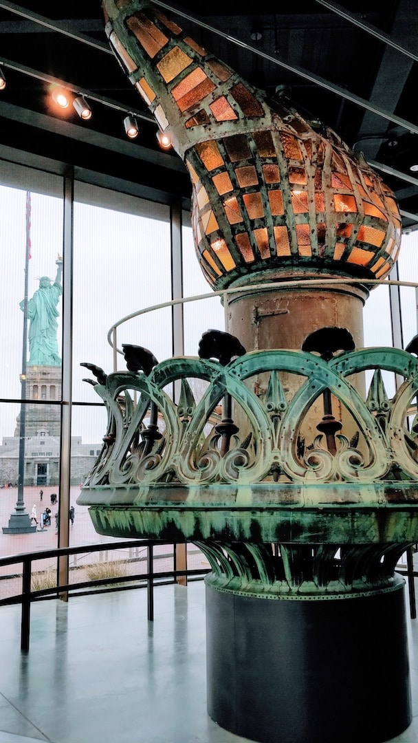 Enfin, la troisième partie de ce musée c’est la « Inspiration Gallery » : c’est probablement la plus emblématique. En effet, c’est ici que se trouve la torche originale qui était dans la main de Miss Liberty depuis son inauguration en 1886 jusqu’en 1985. Elle a été retirée pour être remplacée par une torche plus solide et conçue pour résister aux intempéries. C’est assez impressionnant de voir la torche de si près : elle est vraiment immense !
