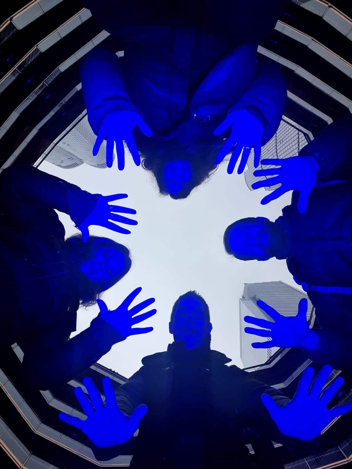 Une des photos à faire c’est d’ailleurs dans ce rond lumineux bleu que vous pouvez voir sur les photos précédentes. Mettez vous sur les faisceaux lumineux au sol au centre de The Vessel, posez votre appareil au sol et placez vous juste au dessus. Vous serez illuminés en bleu avec les gratte-ciel du quartier derrière vous !
