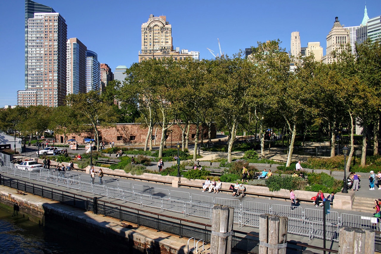 Battery Park ou « The Battery » est un parc de 10 hectares situé au sud de Manhattan, dans le quartier financier de New York. Son nom a été donné en référence aux pièces d’artilleries qui y étaient installées pour protéger le port de New York durant la guerre d’indépendance notamment. C’est clair que sa situation géographique était idéale pour se protéger de potentiels ennemis arrivant du sud.