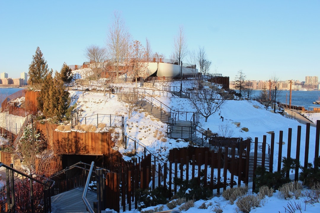 Le projet pour ce parc a débuté en 2012 après le passage de l’ouragan Sandy qui a endommagé le pier 54 le long du Hudson River. C’était alors l’occasion de réfléchir à un aménagement des quais pour les reconstruire avec un concept unique et moderne : Little Island.
