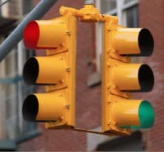 - Quand le feu est rouge clignotant, arrêtez-vous ! Quand il est orange clignotant, cédez le passage.