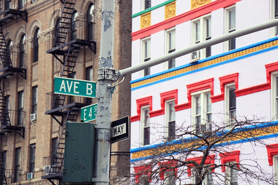 Les avenues A et B bordent Tompkins Square Park. L’avenue A fait aujourd’hui partie des coins jeunes et branchés de New York, avec beaucoup de restaurants et bars. L’avenue C a quant à elle de belles façades colorées !