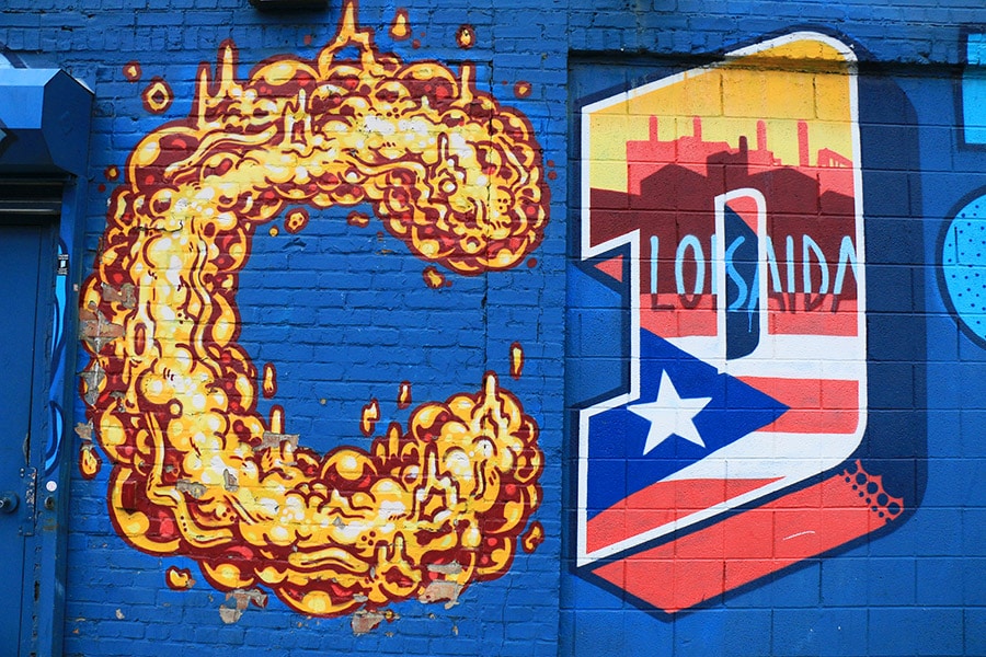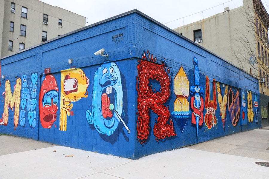Voici la partie plus reculée d’East Village qui a été un vrai coup de cœur pour nous ! Elle a la particularité d’avoir des noms d’avenues numérotées différemment du reste de la ville de New York. En effet, sous la 1ère avenue se trouvent les avenues A, B C et D. D’où le nom donné à cette zone : Alphabet City. Les rues sont assez branchées et surtout reconnaissables grâce aux fresques dessinées au croisement de l’avenue C et 6th St.