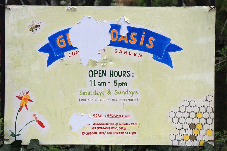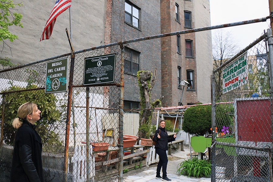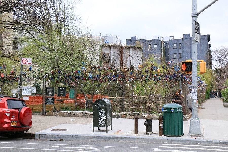 Pendant la crise des années 70, beaucoup de parcelles se sont retrouvées abandonnées à Alphabet City. La ville de New York a alors décidé de lancer un programme visant à transformer plus d’une trentaine de terrains en jardins (programme GreenThumb). Chaque communauté a ses habitudes dans différents jardins aux noms évocateurs : Le Petit Versailles, Miracle Garden, Los Amigos Garden, Secret Garden, Hope Garden ou El Jardin del Paraiso.