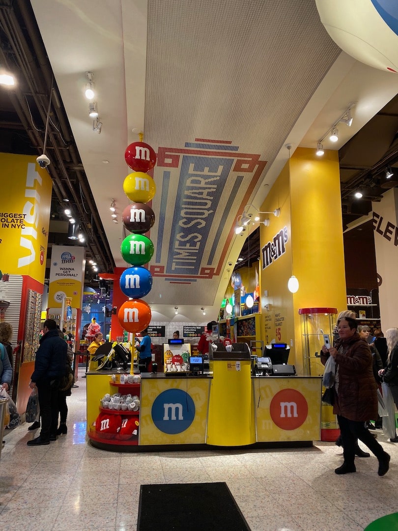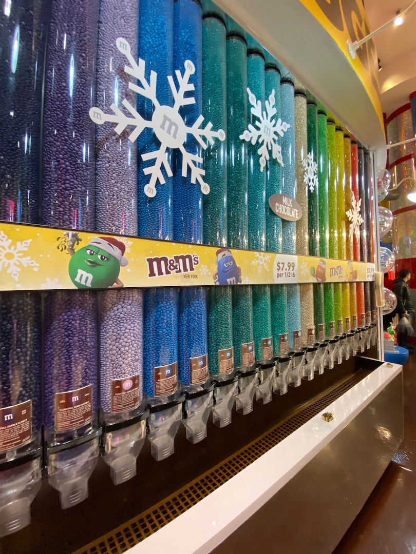 Le M&M’s World de Times Square est le paradis des gourmands ! Vous trouverez tous les M&M’s qui puissent exister : beurre de cacahuète, chocolat noir, noix de coco, cerise, framboise, chocolat au lait, riz soufflé, amandes, … des jaunes, bleus, verts, rouges, noirs, … Tout est prévu pour vous faire craquer ! 🙂