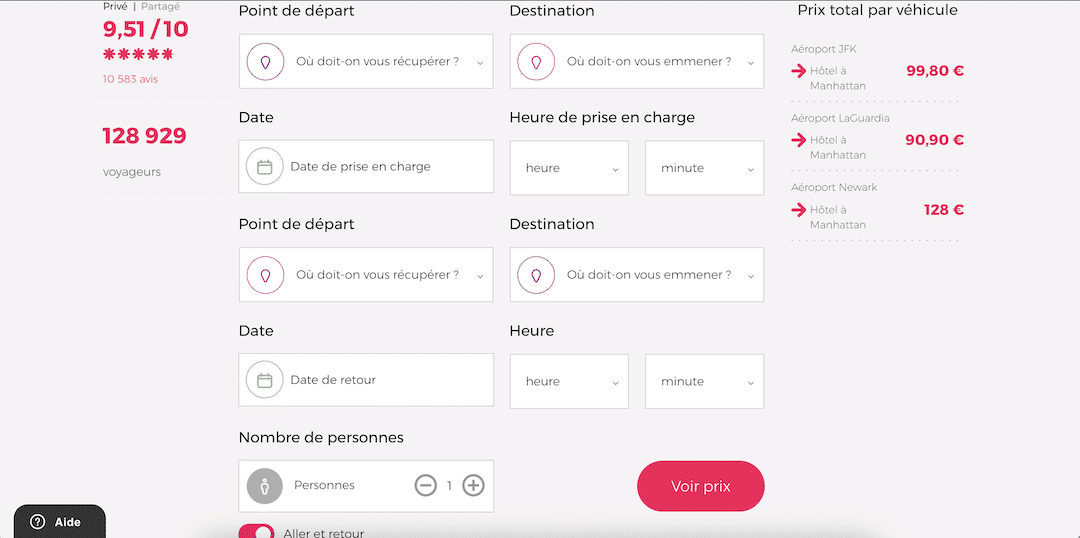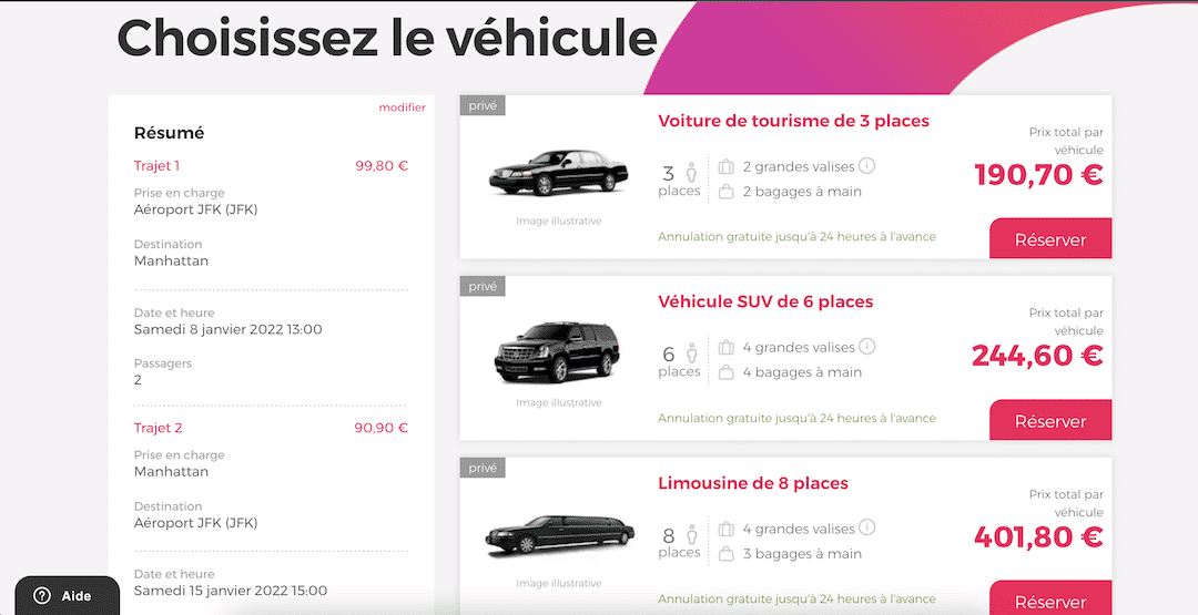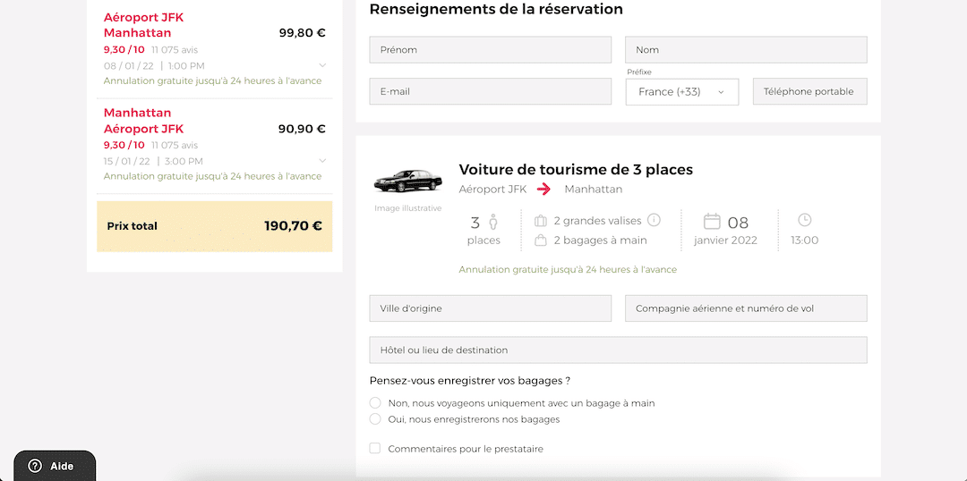 Pour être tranquille à votre arrivée à l’aéroport, voici un tutoriel pour le processus de réservation d’une navette privée. Notez que c’est aussi la meilleure option pour les groupes. Plus vous êtes nombreux, plus le prix du trajet diminue.